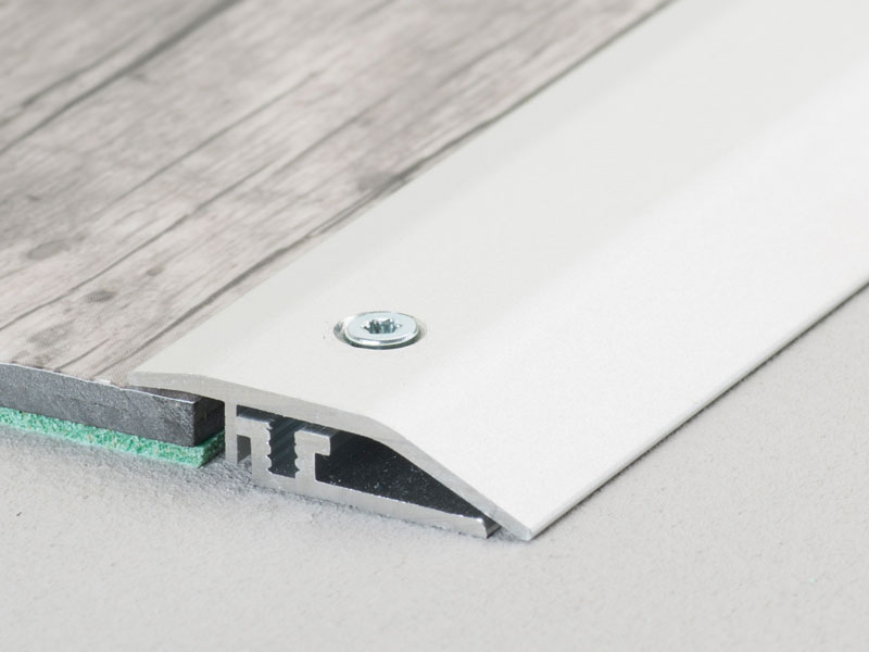 Das Anpassungsprofil von Prinz LPS Design wurde speziell für die Verlegung von schwimmenden Designbelägen entwickelt. Es bietet jedoch auch die Möglichkeit, andere Bodenbelagsarten mit ähnlicher Stärke zu verarbeiten, da es sich automatisch an Aufbauhöhen von bis zu 8,5 mm anpasst. Die Installation ist schnell und einfach. Das Anpassungsprofil beeindruckt nicht nur durch seine einfache Montage und die Vielfalt seiner Einsatzmöglichkeiten, sondern auch durch sein modernes Design in der Trendfarbe Silber. Es kann auf dunklen Böden verwendet werden, um stilistische Akzente zu setzen, oder auf hellen Böden für einen unauffälligen Look montiert werden - die Entscheidung liegt bei Dir.
