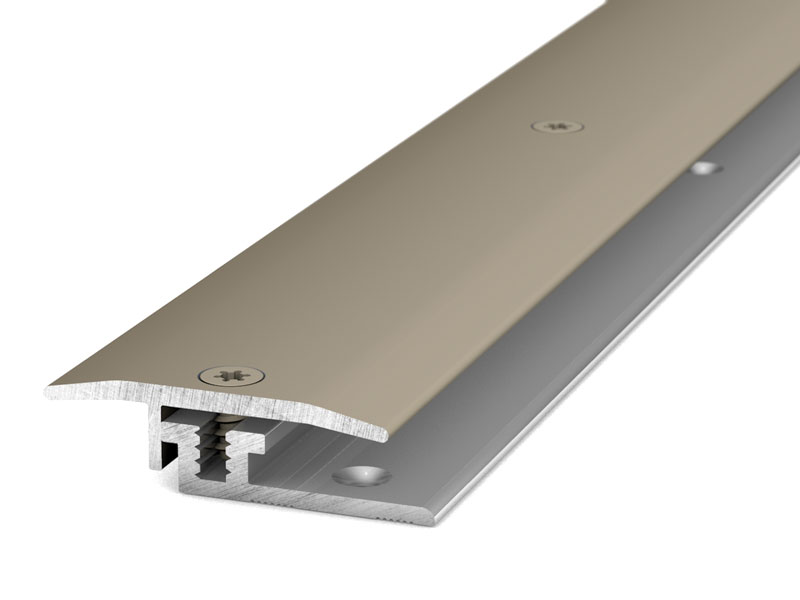 Nach der Befestigung des Basisprofils auf dem Untergrund erfolgt die Verlegung des Bodenbelages. Mit den beigefügten Schrauben wird das Oberprofil anschließend im Schraubkanal befestigt. Fertig. Die schmalen, flachen Profile überzeugen durch eine perfekte Optik und bieten gleichzeitig großzügige Dehnungsfugen für die Dimensionsschwankungen des Bodenbelages.