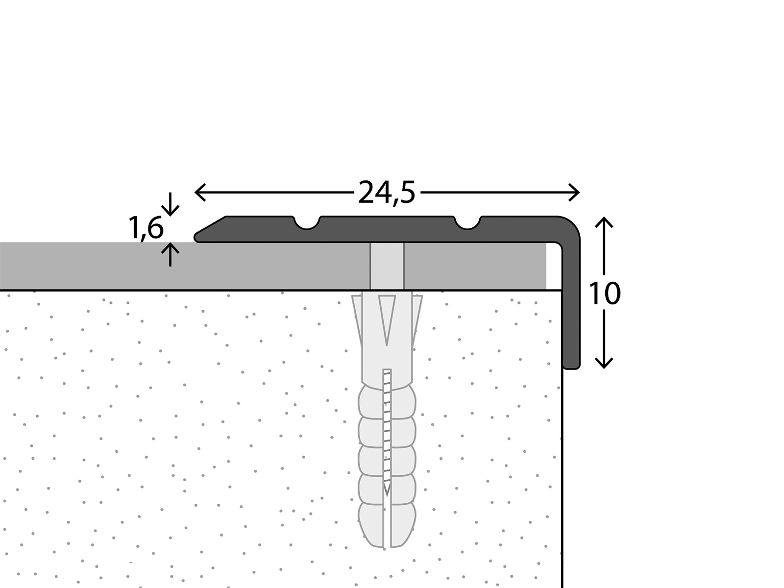 Der Treppenwinkel besteht aus massivem Aluminium mit einer matten Edelstahl-Oberfläche – das sieht nicht nur edel aus, sondern steckt auch einiges weg. Mit 24,5 mm Breite bietet er ausreichend Trittfläche für den Schutz der Kanten, ohne klobig zu wirken. Du bekommst ihn in zwei Längen: 1.000 mm für Standardanwendungen oder 2.700 mm, wenn’s etwas größer sein darf. Die versenkten Schraublöcher sorgen dafür, dass keine Kanten überstehen und alles bündig abschließt. Montiert wird der Winkel klassisch mit Schrauben, das passende Zubehör ist direkt dabei – so kannst du direkt loslegen, ganz ohne Umwege. Ein rundes Ding, das in Sachen Funktion und Optik gleichermaßen punktet.