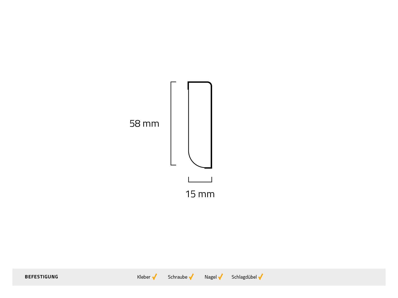 Badezimmer Sockelleiste weiß 15 x 58 mm Feuchtraum MDF im Modern-Profil
