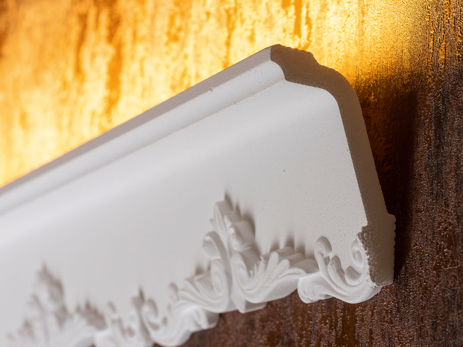 Die Zierleiste Victoria nimmt das Spiel mit Licht und Schatten auf ein ganz neues Level. Mit ihren beeindruckenden Maßen von 65 x 95 mm ist sie nicht nur eine Zierleiste, sondern ein echtes Gestaltungselement, das jedem Raum eine außergewöhnliche Tiefe und Atmosphäre verleiht. Besonders für die Liebhaber von indirekter Beleuchtung bietet Victoria unendliche Möglichkeiten, das Zuhause in ein warmes und einladendes Lichtermeer zu verwandeln.