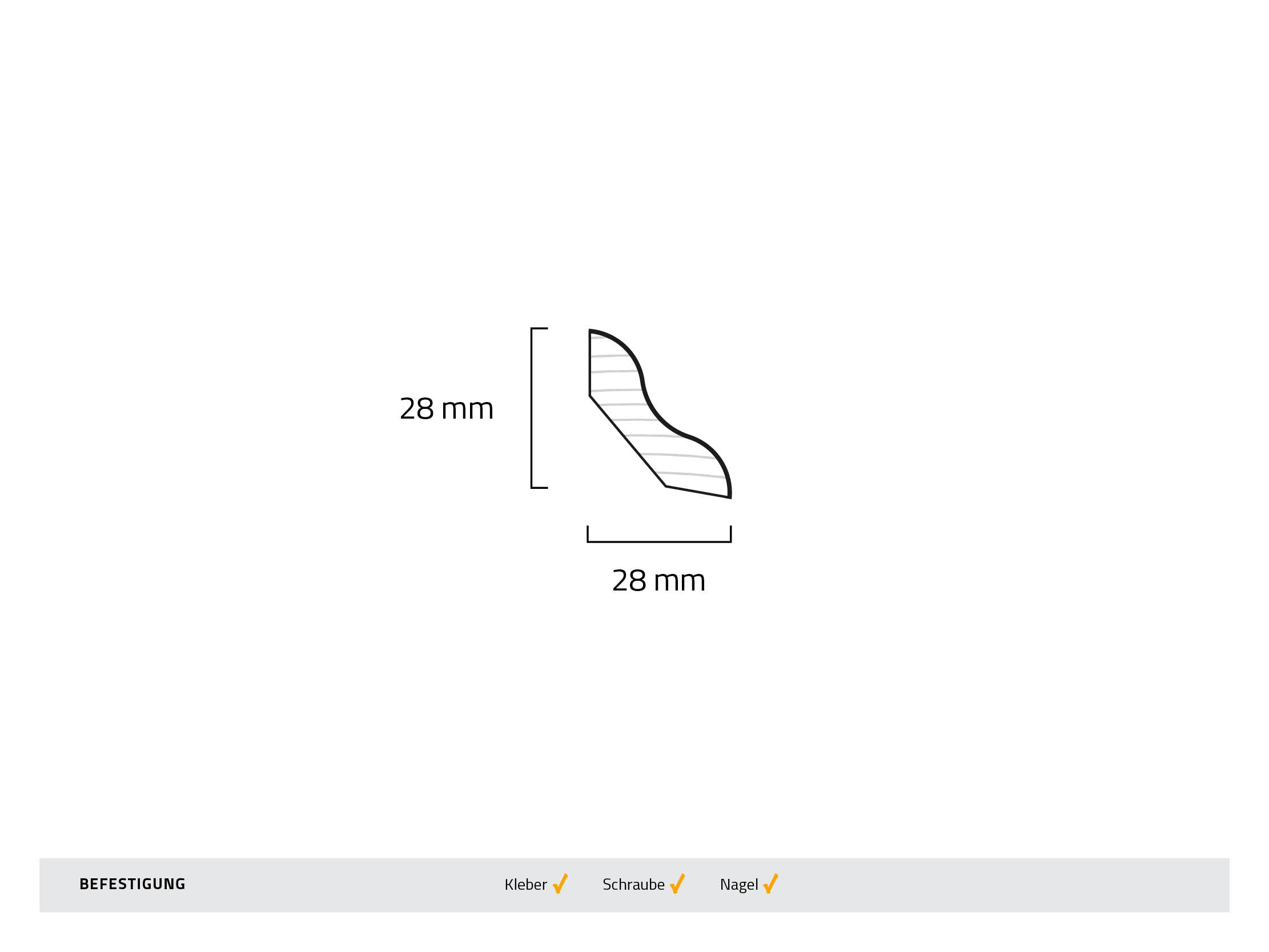 Hohlkehlleiste 28 x 28 mm Fichte weiß foliert RAL9016