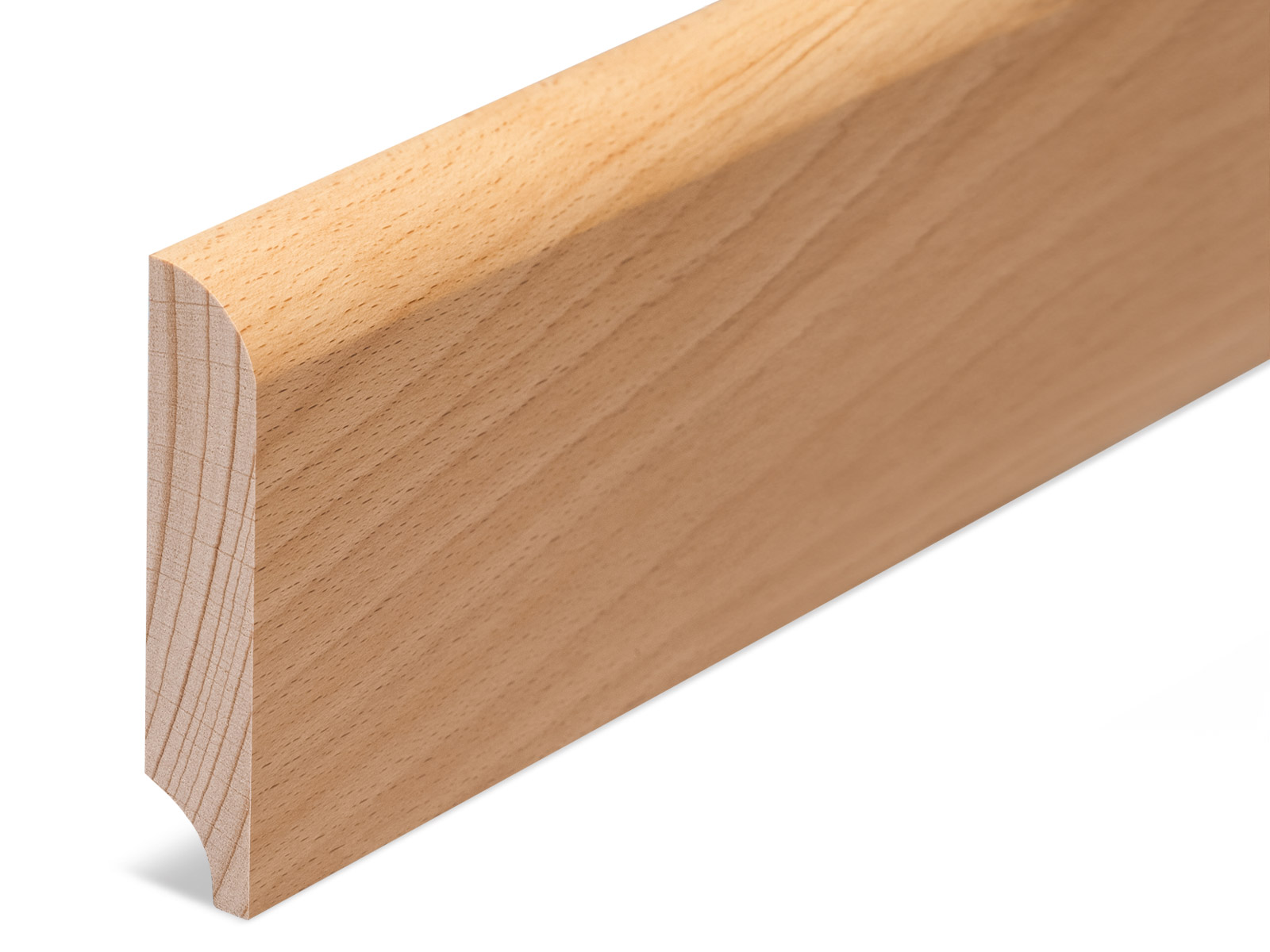 Massivholz Sockelleiste Buche lackiert 13 x 60 mm - Abgerundetes Profil
