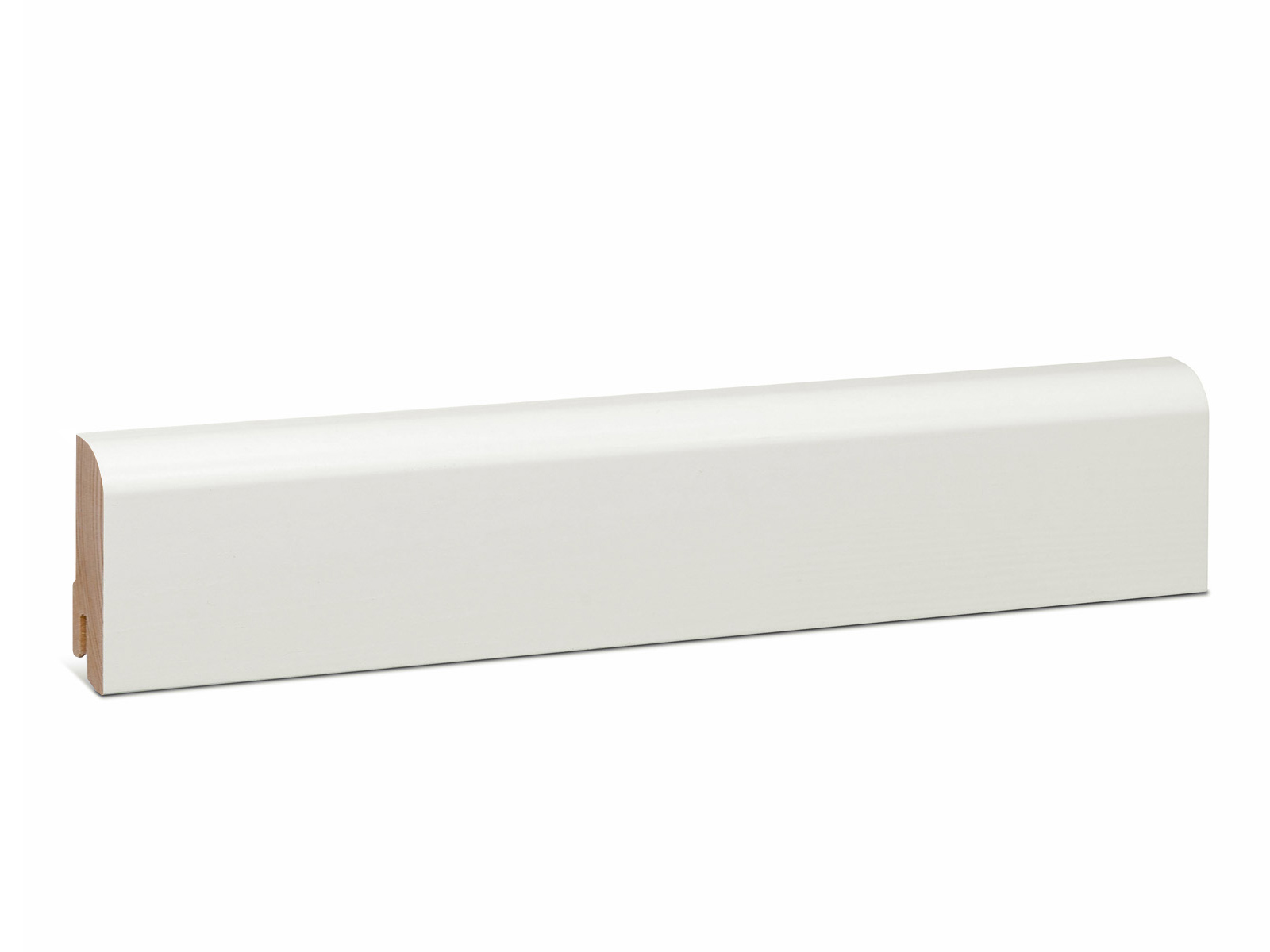 Massivholz Sockelleiste weiß 18 x 58 mm Kiefer lakiert (RAL9010) Abgerundetes Profil