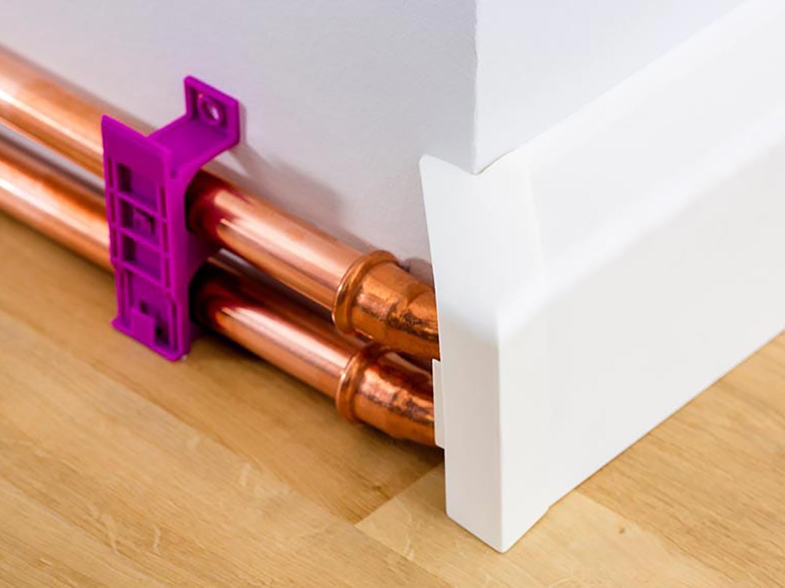 Für eine zusätzliche Wärmedämmung sorgt die doppelwandige Bauweise dieser Rohrverkleidungsleiste.