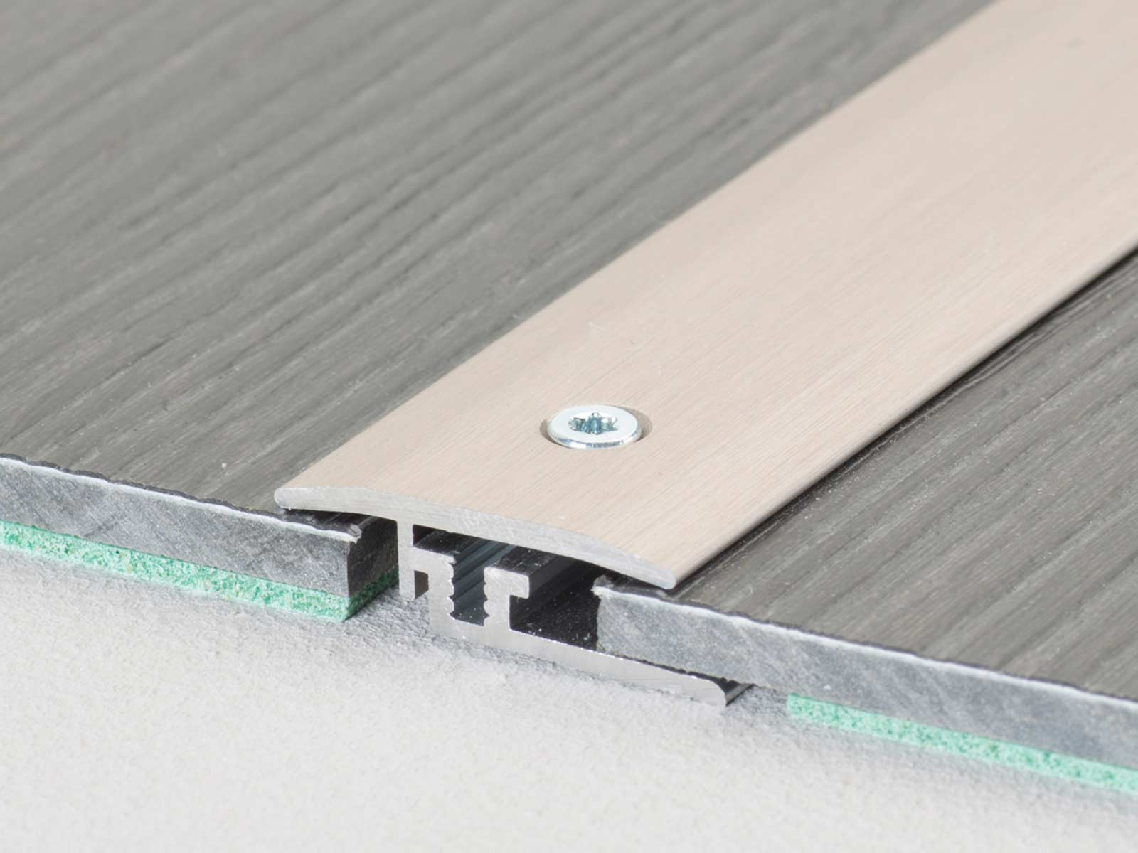 Nach der Befestigung des Basisprofils auf dem Untergrund erfolgt die Verlegung des Bodenbelages. Mit den beigefügten Schrauben wird das Oberprofil anschließend im Schraubkanal befestigt. Fertig. Die schmalen, flachen Profile überzeugen durch eine perfekte Optik und bieten gleichzeitig großzügige Dehnungsfugen für die Dimensionsschwankungen des Bodenbelages.