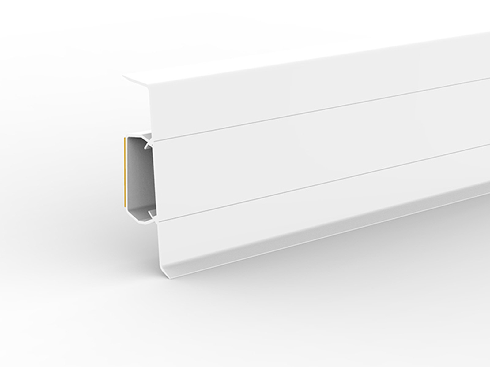Die moderne Kabelkanal - Leiste aus PVC in der Farbe Weiß, überzeugt mit Ihrer neuen cubischen Form, sowie ihrer spielend leichten Montage. Diese Leiste eignet sich dabei für alle Bodenbeläge, insbesondere aber für Laminatboden. Durch den integrierten Kabelkanal kannst du störende Kabel einfach und bequem verschwinden lassen. Die integrierte Weichlippe bietet dir einen sauberen Abschluss zum Fußboden, sowie einen genauen Wandabschluss.