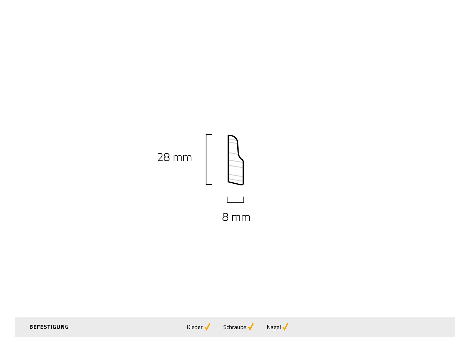 Wandleiste Kiefer 8 x 28 mm - Weiß lackiert