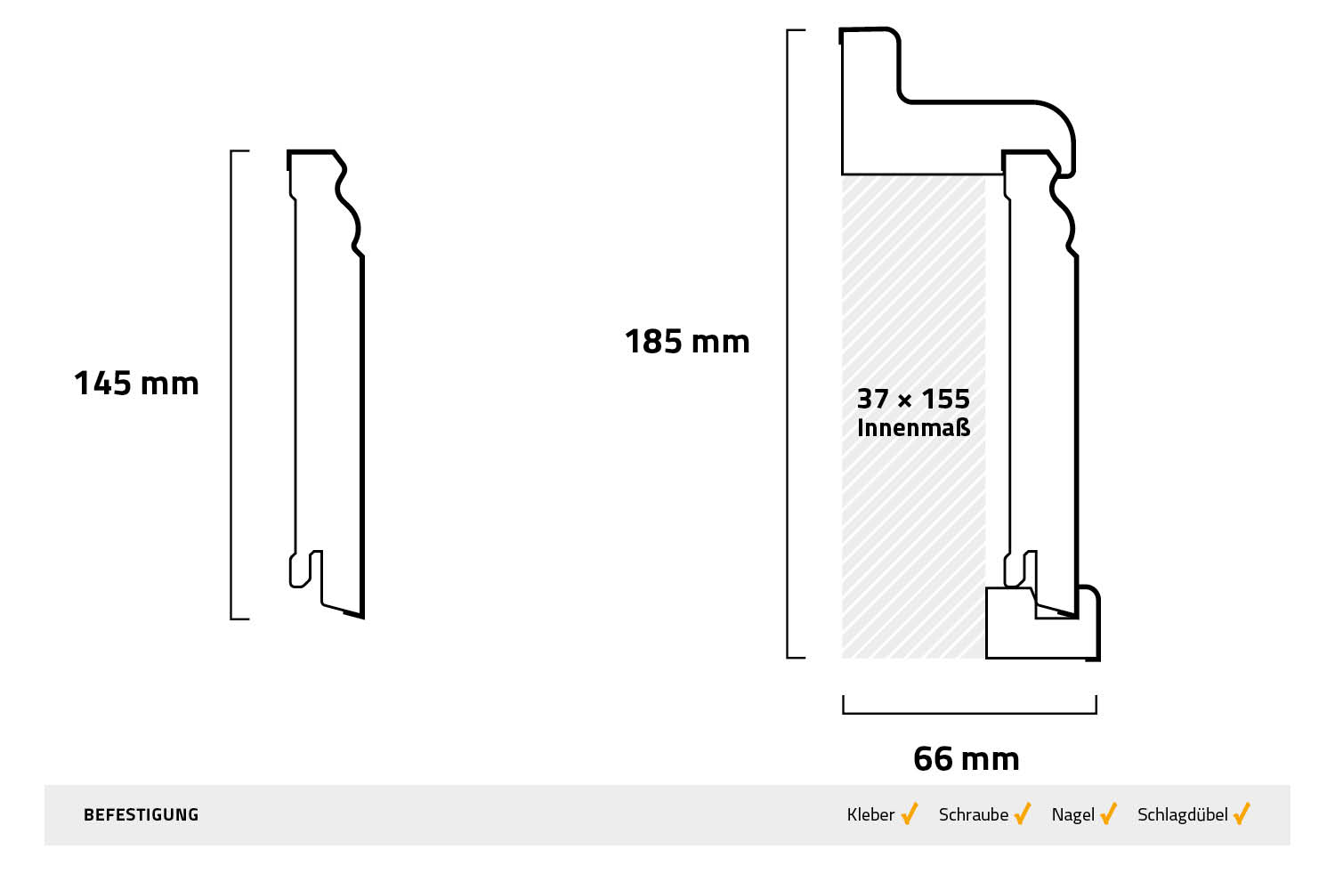 Ganz einfach, das robuste, PEFC-zertifizierte MDF-Trägermaterial lässt sich nicht nur wunderbar leicht mit Hilfe von Schrauben selbst an unebenen Wänden befestigen. Dank der überstreichbaren und widerstandsfähigen Qualitätsfolie ist das Komplett-Set auch vielseitig mit nahezu allen Bodenbelägen kombinierbar. So sorgen Hamburger Sockelleiste und Heizrohradapter gleichermaßen für mehr Ordnung und ein optisch aufgeräumtes Zuhause. Unabhängig davon, ob Du Deine vier Wände nun eher klassisch, im Landhaus-Stil oder im coolen Vintage-Look eingerichtet hast.