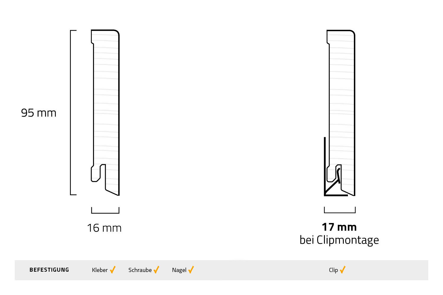 Eiche Sockelleiste klar lackiert 16 x 95 mm - Modern Profil