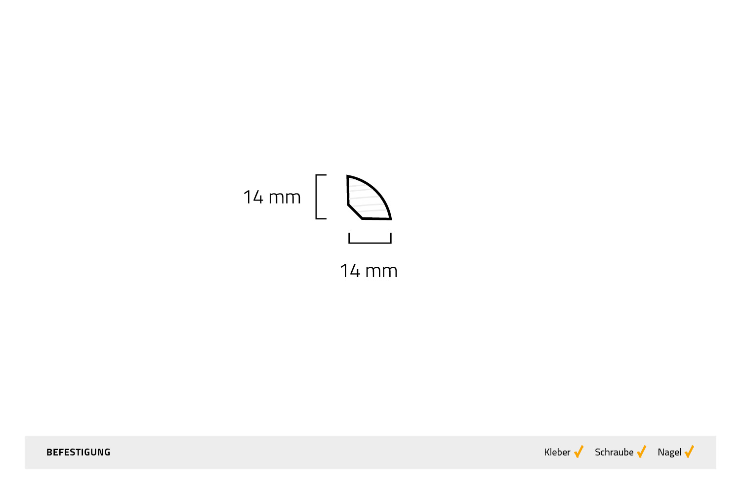Erhältlich in den Größen 12 x 12 mm, 14 x 14 mm und 18 x 18 mm, bietet der Viertelstab für jede Anwendung das richtige Format. Die robuste Verarbeitung aus massivem Kiefernholz macht ihn stabil und langlebig, während die hochwertige Lackierung nicht nur gut aussieht, sondern auch vor Feuchtigkeit schützt. Hergestellt von KGM, „Made in Germany“ und zertifiziert vom Sentinel Haus Institut, ist diese Leiste ein verlässlicher Begleiter für deine Projekte. Einfach montiert, immer passend – genau das, was ein Viertelstab können muss.