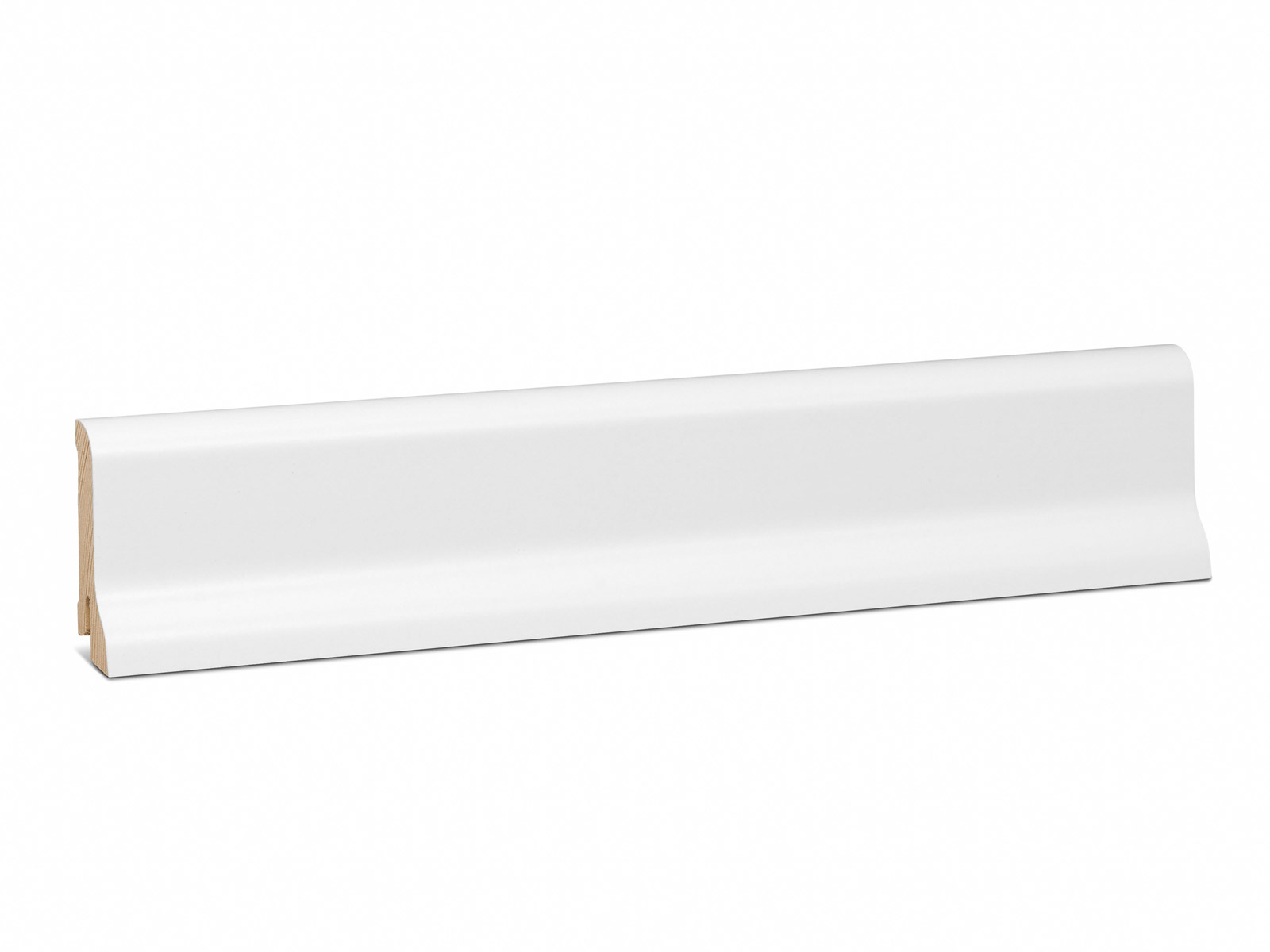 Die klassische Fußbodenleiste mit versteckter Kabelführung besteht aus einem massiven Kern aus Fichtenholz und wird abschließend noch mit einer überstreichbaren, widerstandsfähigen Starkfolie überzogen. Dadurch ist das empfindliche Holzmaterial optimal geschützt vor Schäden und eindringender Feuchtigkeit. Mit ihrem Weißton im RAL-Wert 9016 fügen sich die Fußbodenleisten nahtlos in fast jedes Ambiente ein.
