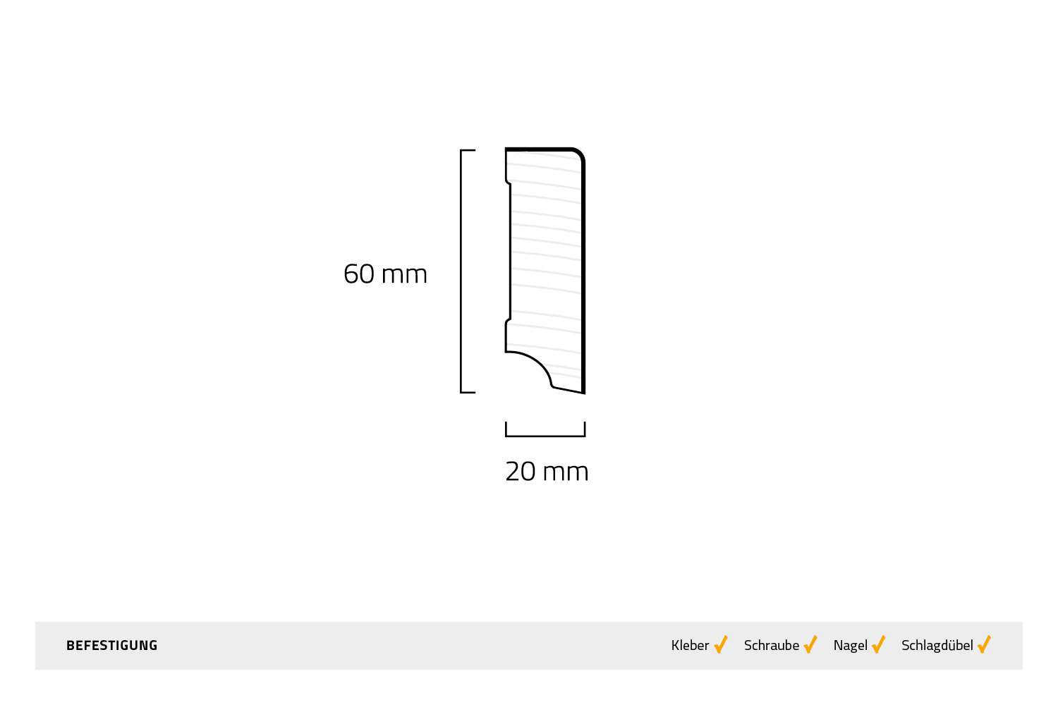 KGM 60-FSC®-zertifizierte Eiche Sockelleiste weiß RAL9010 (20x60mm)