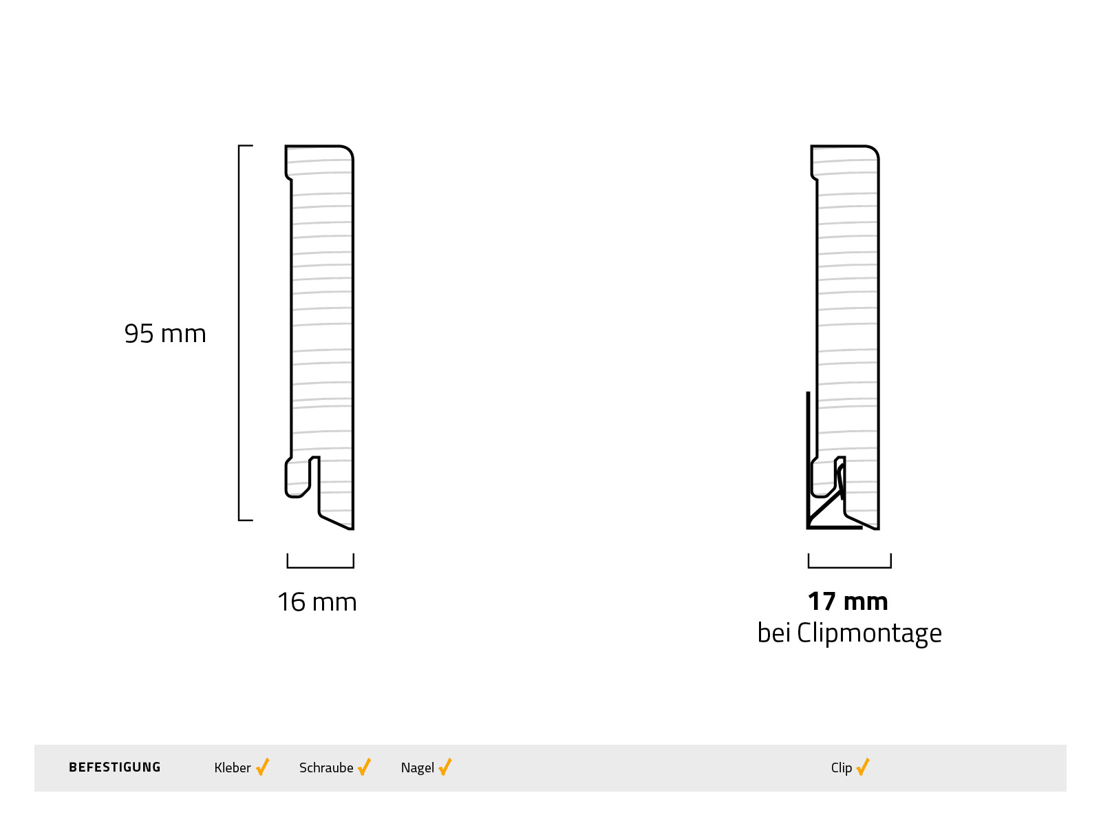 Kiefer Sockelleiste weiß 16 x 95 mm Massivholz lackiert (RAL9016) Modern Profil