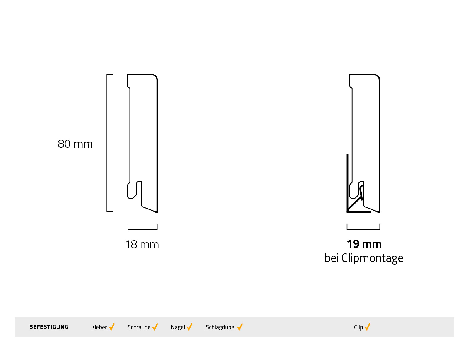 Sockelleiste weiß 18 x 80 mm - Modern Profil, MDF direktlackiert RAL9016