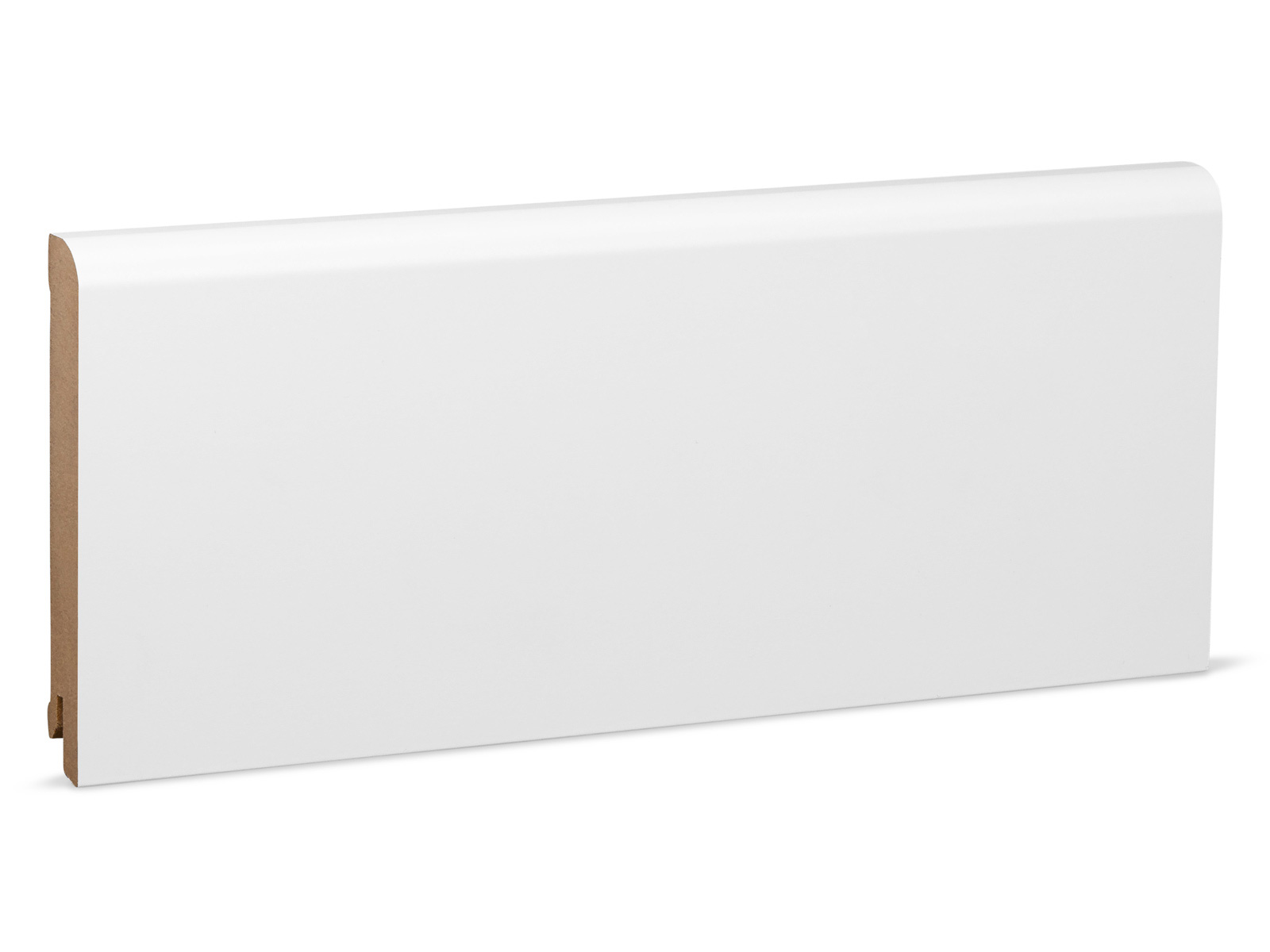 Sockelleiste weiß 18 x 120 mm Oben rund Profil MDF foliert (RAL9016)