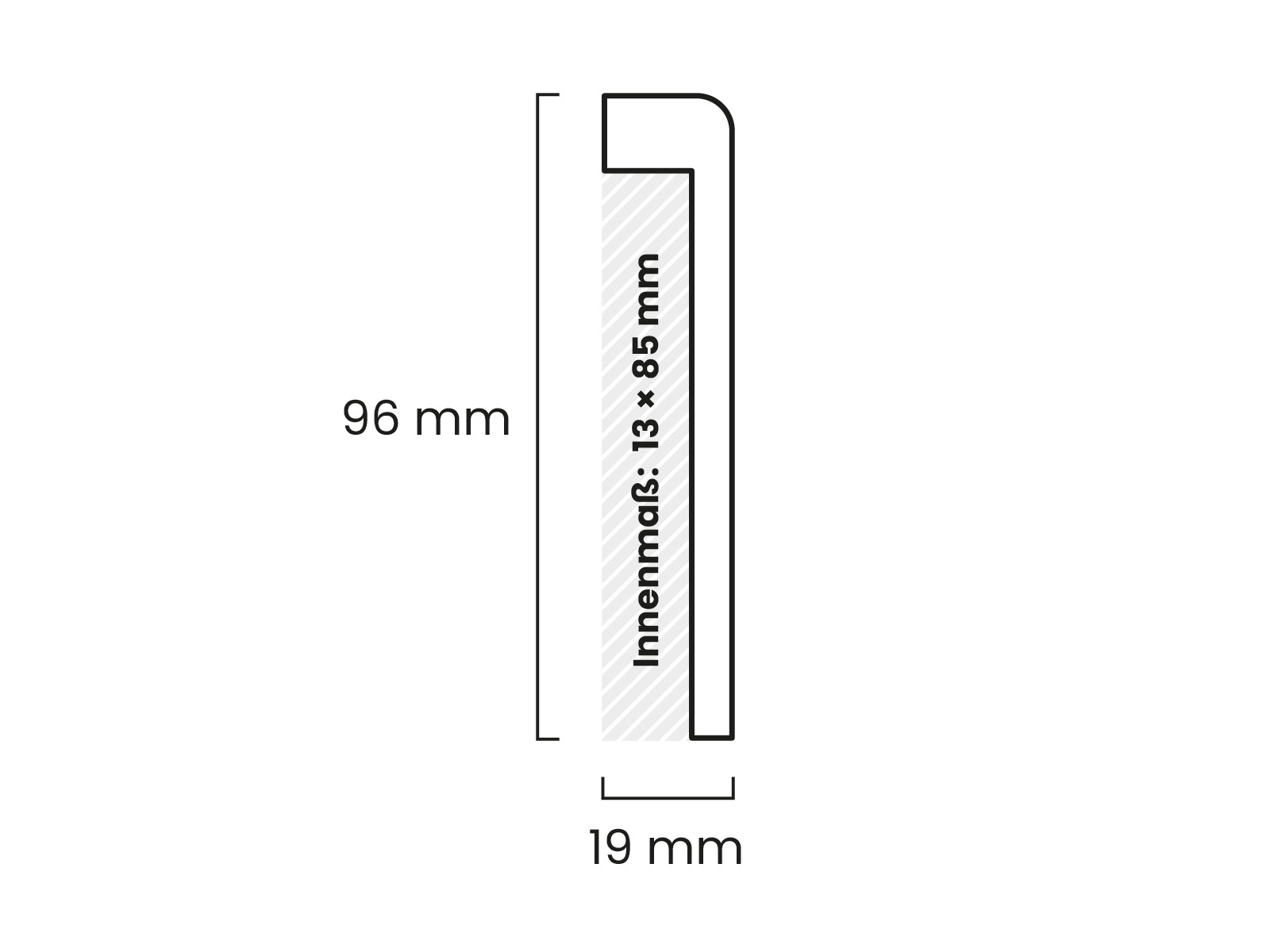 Mit 19 mm Tiefe, 96 mm Höhe und einer Länge von 2.500 mm verdeckt die Leiste zuverlässig Fliesensockel bis 85 mm hoch und 13 mm tief. Der MDF-Kern sorgt für eine stabile, aber leicht zu bearbeitende Basis, die du mit einer normalen Säge ganz bequem anpassen kannst. Die Folierung in Bronze ist strapazierfähig, pflegeleicht und bringt das gewisse Etwas an die Wand. Die Montage gelingt schnell und sauber mit etwas Montagekleber – kein Bohren, kein Dreck. Für saubere Ecken nimmst du am besten eine Gehrungslade.