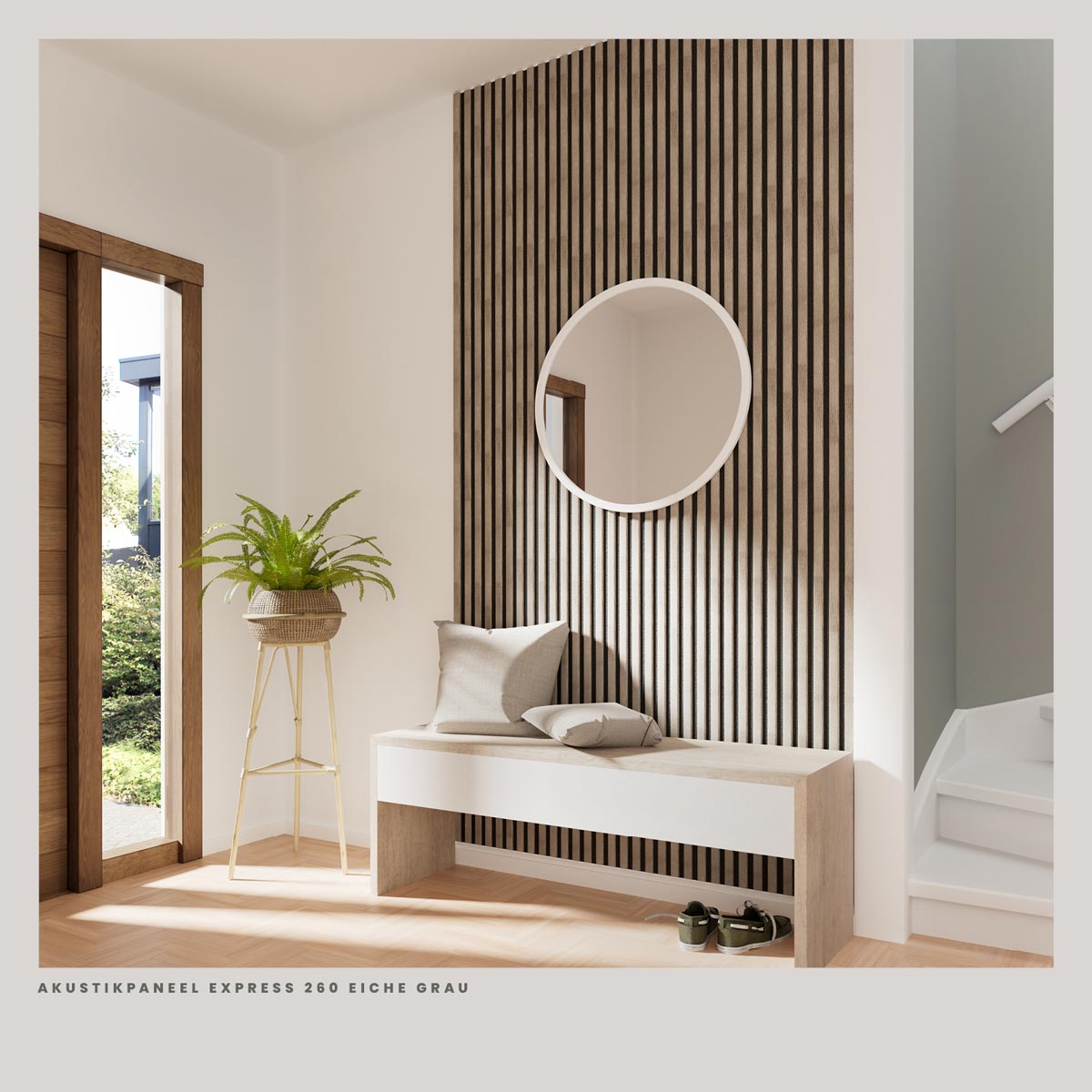 Akustikpaneele in Eiche Grau für ruhige und moderne Räume