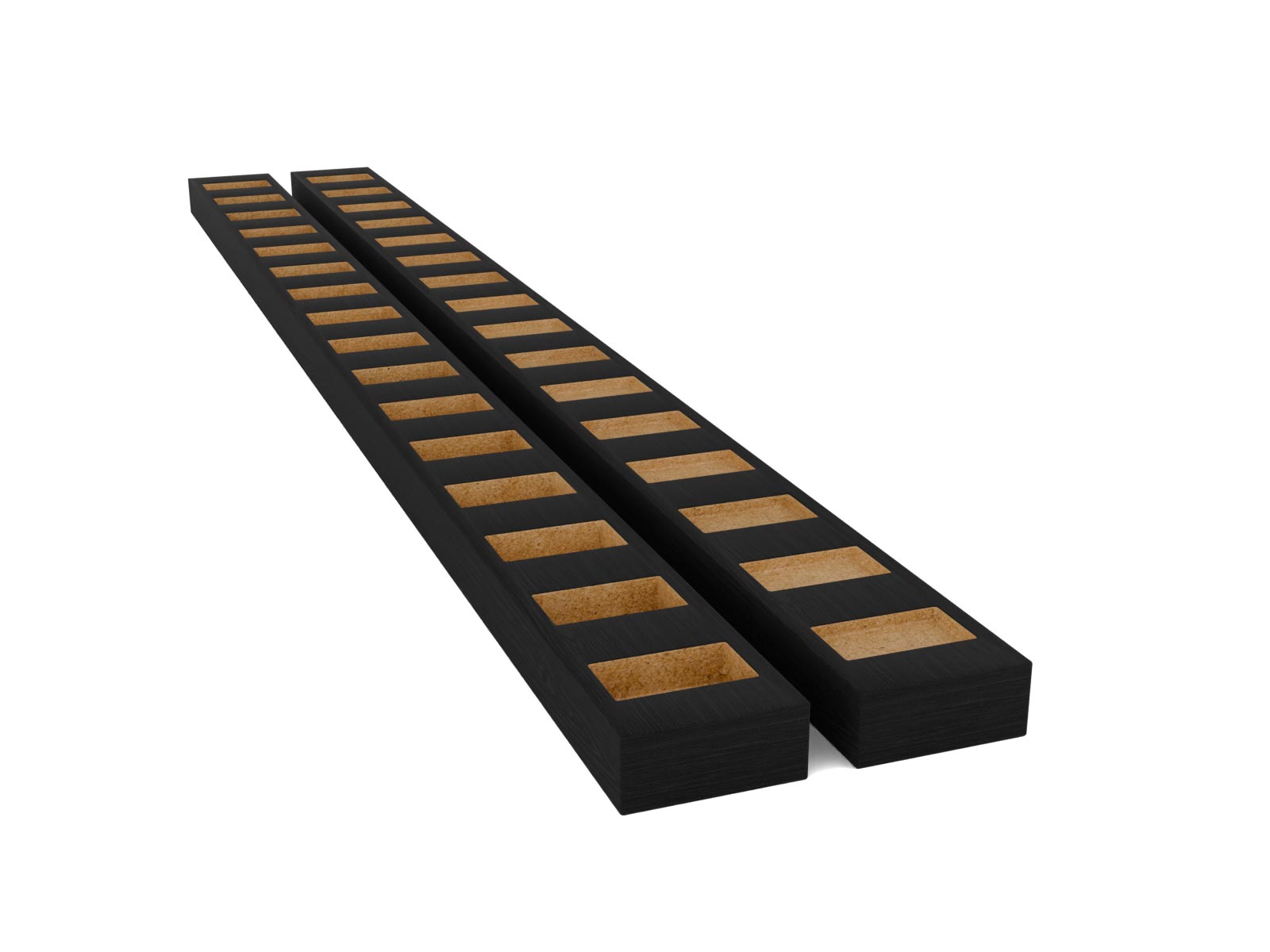 Das Set besteht aus einem Boden- und einem Deckenprofil mit jeweils 16 präzise gearbeiteten Aussparungen pro Meter. Die Lamellen werden sicher geführt und dauerhaft fixiert – ganz ohne sichtbare Schrauben oder Bohrlöcher. So entsteht ein sauberer, hochwertiger Abschluss mit hoher Stabilität.