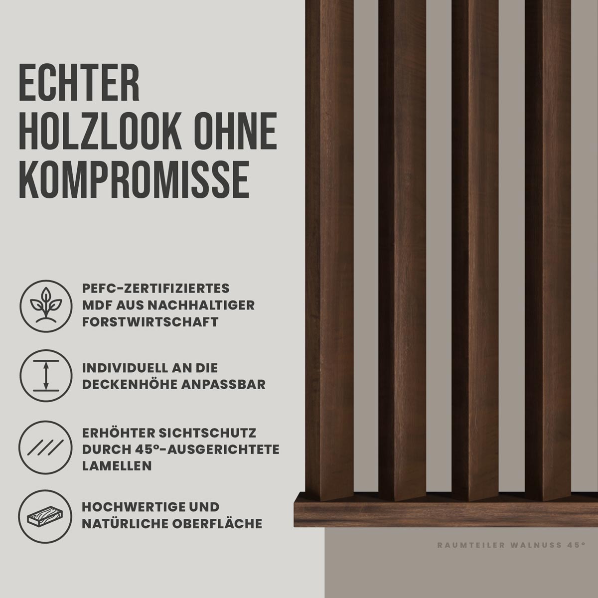 Raumteiler-Set 45° Walnuss – modernes Design mit dynamischer Linienwirkung